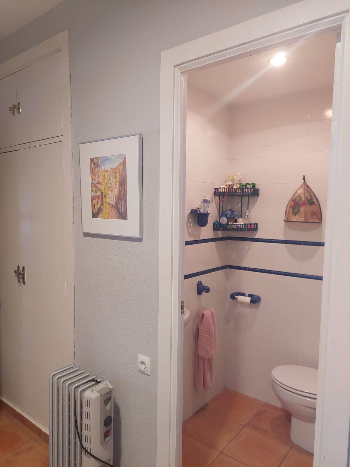 Habitación principal con baño completo en suite y armario empotrado en el pequeño recibidor que la precede.
