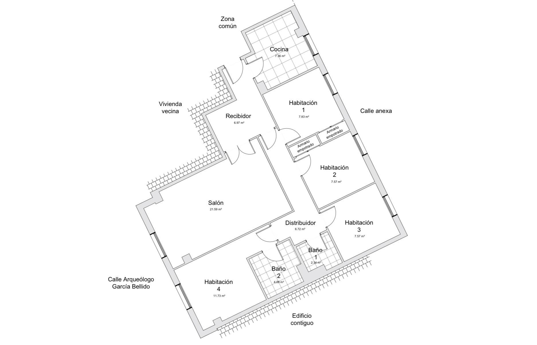 La vivienda se vende sin mobiliario excepto la cocina (con frigorífico). En el reportaje de fotos se muestran varias fotografías de la vivienda que han sido editadas (para amueblado y decorado) con IA (Inteligencia artificial).