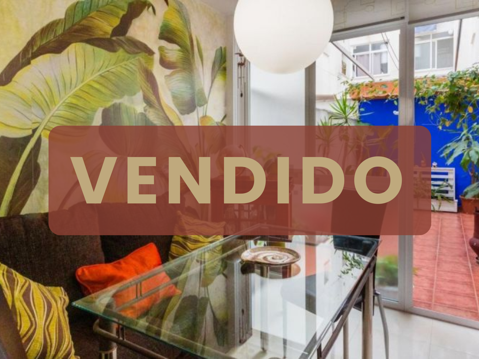 A continuación, un aseo original y llamativo. Al fondo, nos encontramos con un salón de 24m², desde el que se accede al precioso patio. Las plantas toman protagonismo y los pequeños detalles decorativos lo convierten en un jardín muy agradable, que además aporta mucha luz al salón.